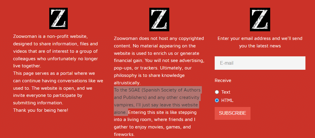Launched in 2015, Zoowoman was a popular Spanish non-commercial film repository.